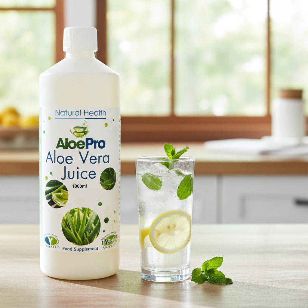 This 1-liter bottle is easy to use and should be shaken well before use. Please note that the product's taste, colour, and consistency may vary from batch to batch, but this does not affect its quality or potency. Store AloePro Aloe Vera Juice in a cool, dry place out of direct sunlight and refrigerate after opening for maximum freshness.